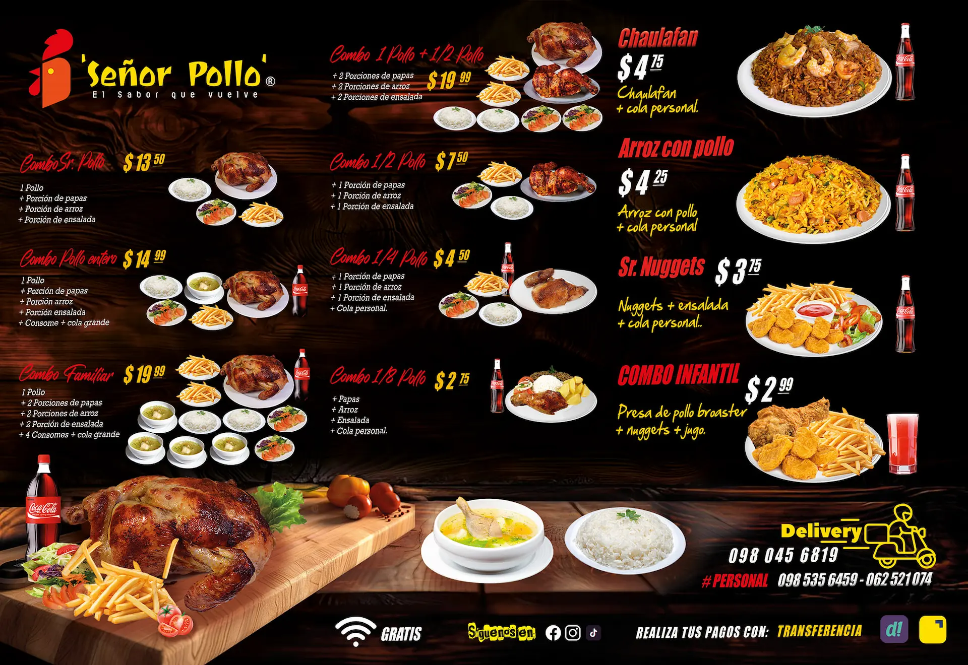 Pero la experiencia no termina ahí: su menú también incluye opciones irresistibles como hamburguesas y el popular chaulafán, que, combinado con el pollo asado, crea una mezcla de sabores que sorprende y conquista a todos los paladares.