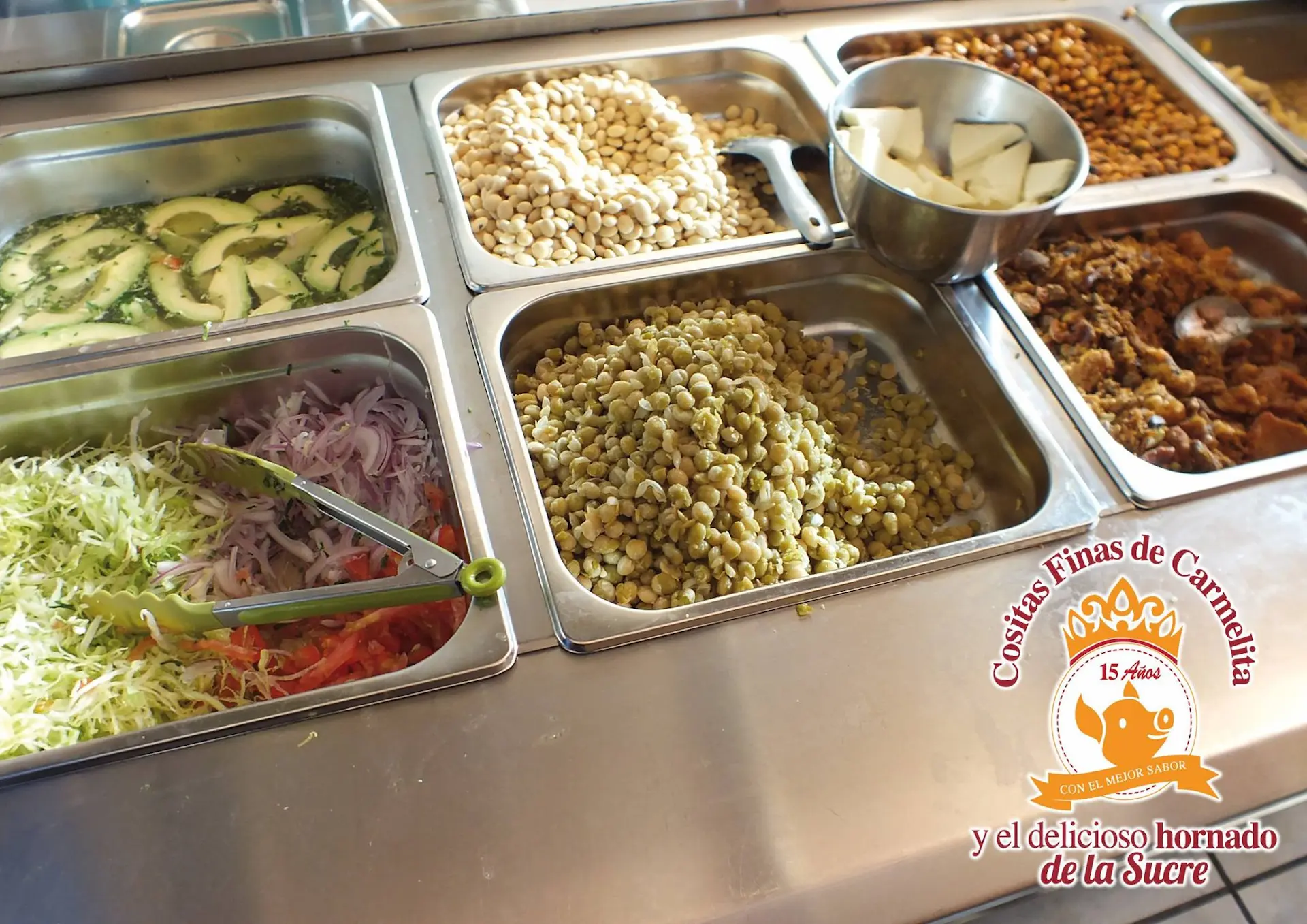 Aquí podrás disfrutar de las famosas cositas finas, una exquisita mezcla de granos acompañados con queso, fritada mechada y ensalada, un verdadero deleite para quienes buscan sabores auténticos y llenos de tradición. Y si prefieres, el reconocido hornado se convierte en otra de las estrellas del lugar: jugoso, tierno y preparado con el toque especial de la casa que lo hace inconfundible.