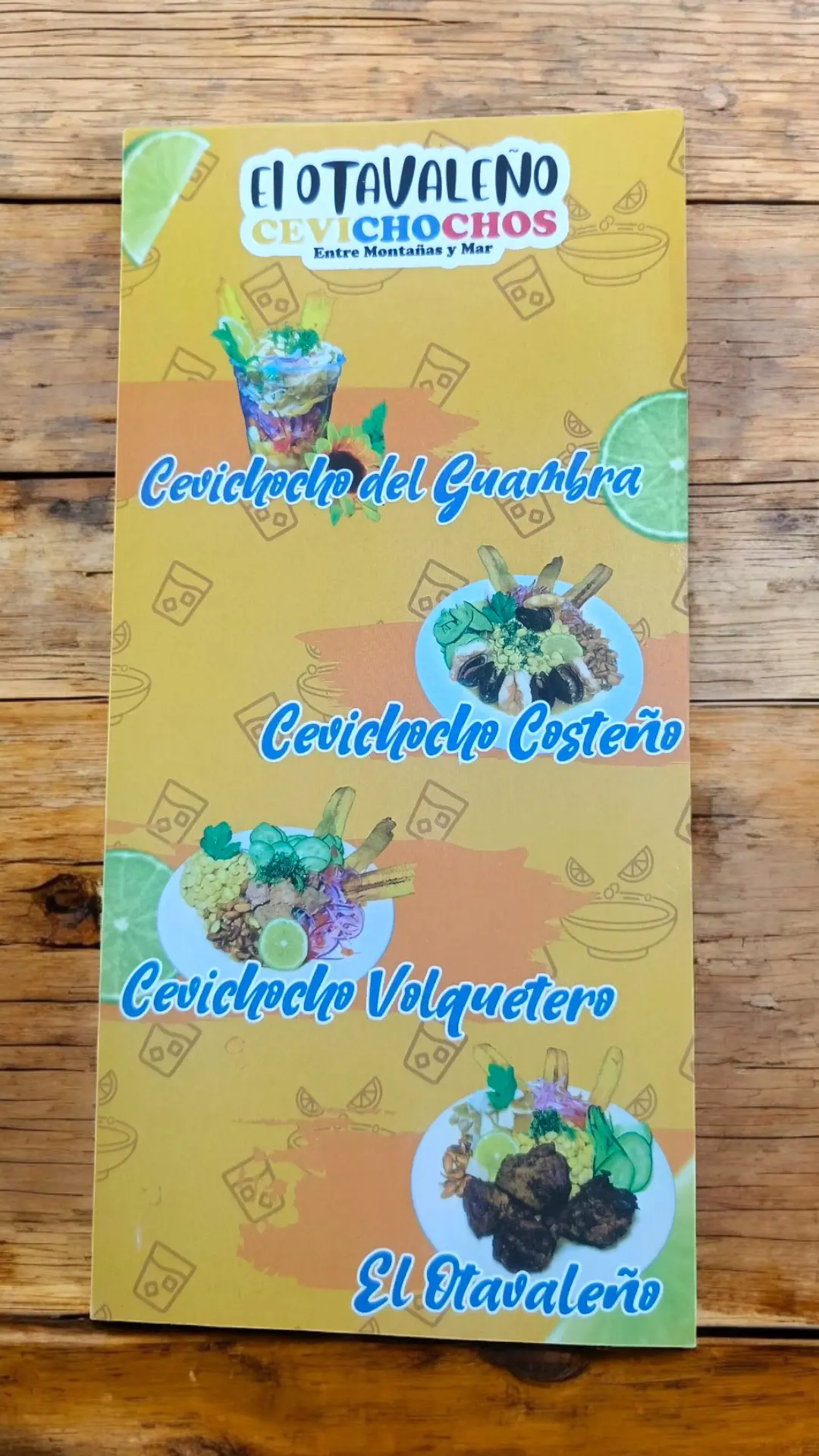 Además, el menú incluye la exquisita fritada, un clásico serrano que complementa de manera perfecta la experiencia culinaria y hace que cada visita sea aún más especial.Gracias a su ubicación céntrica, El Otavaleño “Cevichochos” es ideal para comprar y disfrutar mientras paseas por las pintorescas calles de Otavalo.