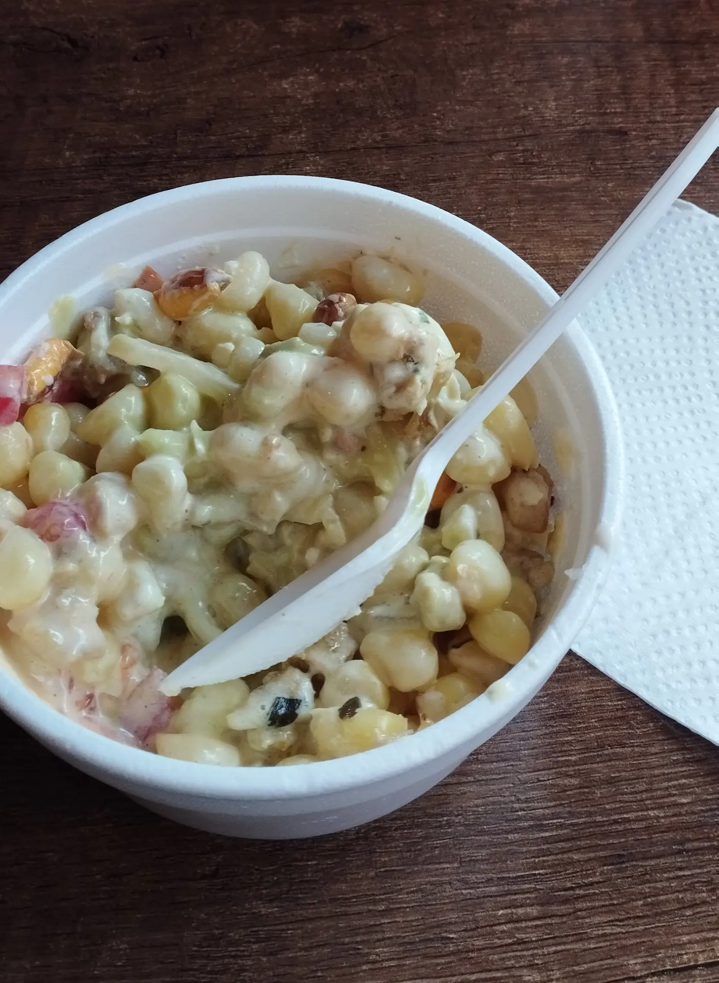 Su especialidad es el clásico choclo mote, servido con un toque único gracias a sus exquisitas salsas caseras que lo convierten en una verdadera delicia. Entre las más populares están la salsa de queso, la de aguacate y, por supuesto, el infaltable chicharrón que aporta ese sabor crujiente y auténtico que tanto gusta.